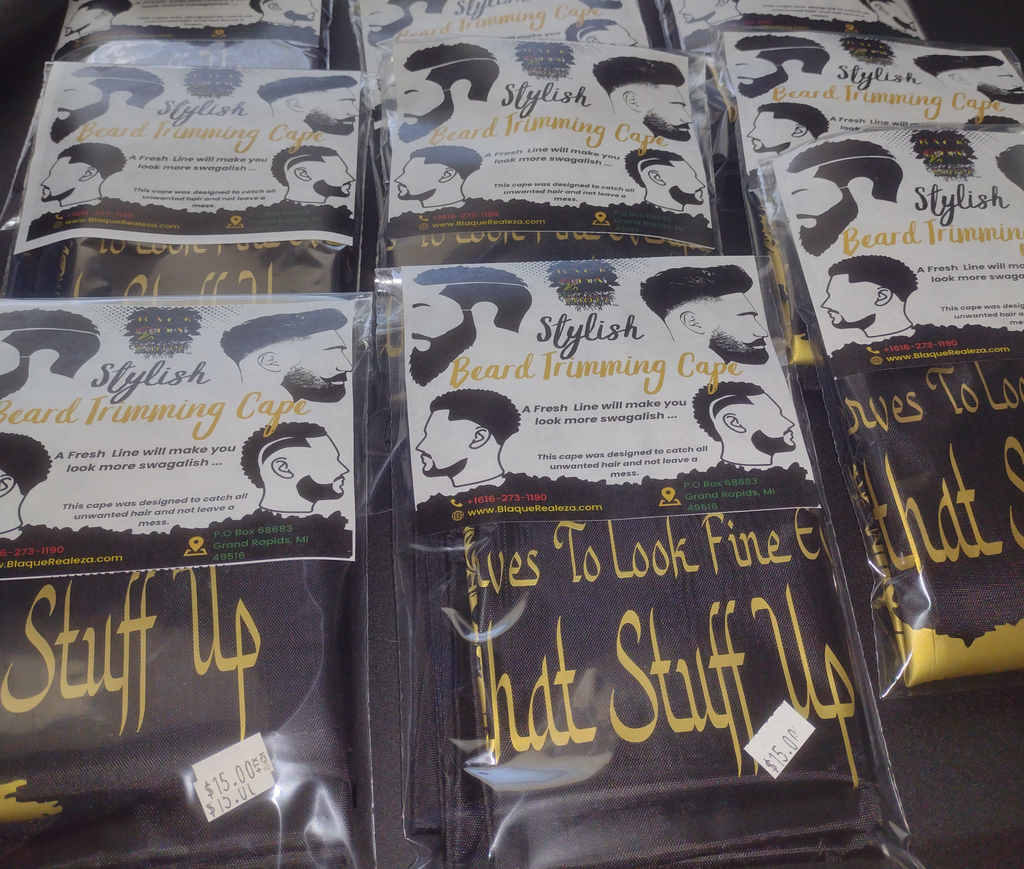 Are you a man who loves to shave your own head or beard. Well we have a cape just for you to keep everything clean. We know that it is a headache cleaning all the hair in the bathroom so use one of our affirmation capes to captures all the hair.