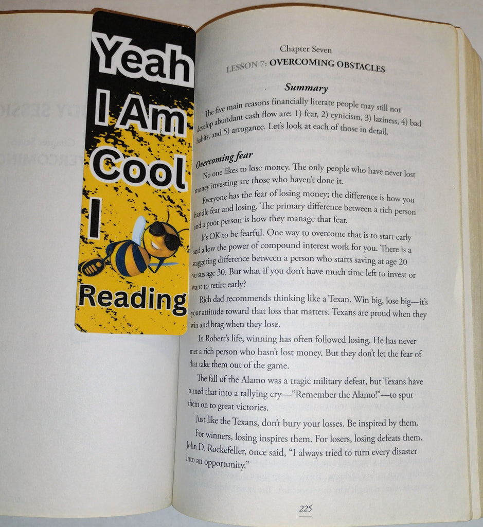 This bookmark is part of my bee collection. It was influenced by a youtuber and her family Bizzy Bee. It was designed to be a reminder for you to know that you are cool and cool people read. I just incorporated the word bee to go with the background.
